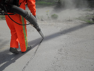 用空壓機或背負式吹風機將槽內的碎渣及裂縫兩側至少lOcm范圍內的灰塵徹底清掃干凈。
